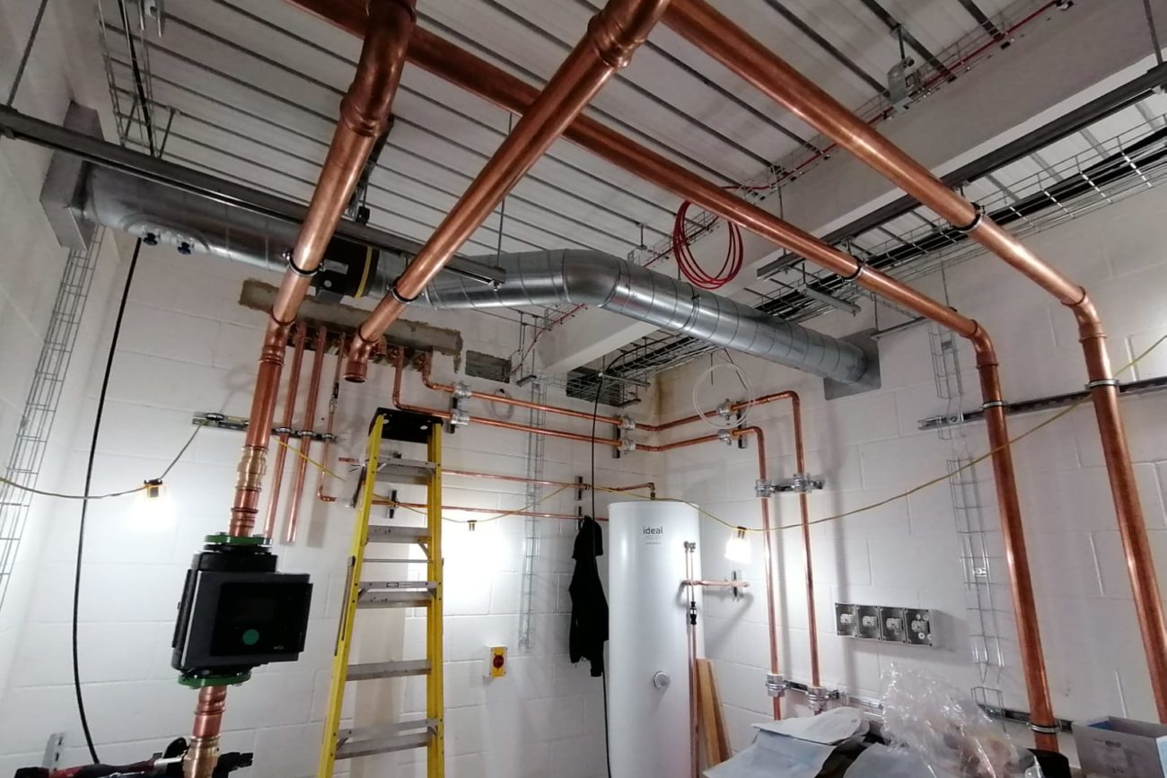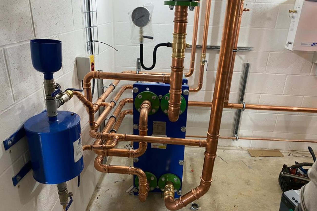 - Centralised Plant Room: A central plant room was established, housing a heat pump, thermal store, plate heat exchanger, sterilisation hot water storage cylinder, and pumps.